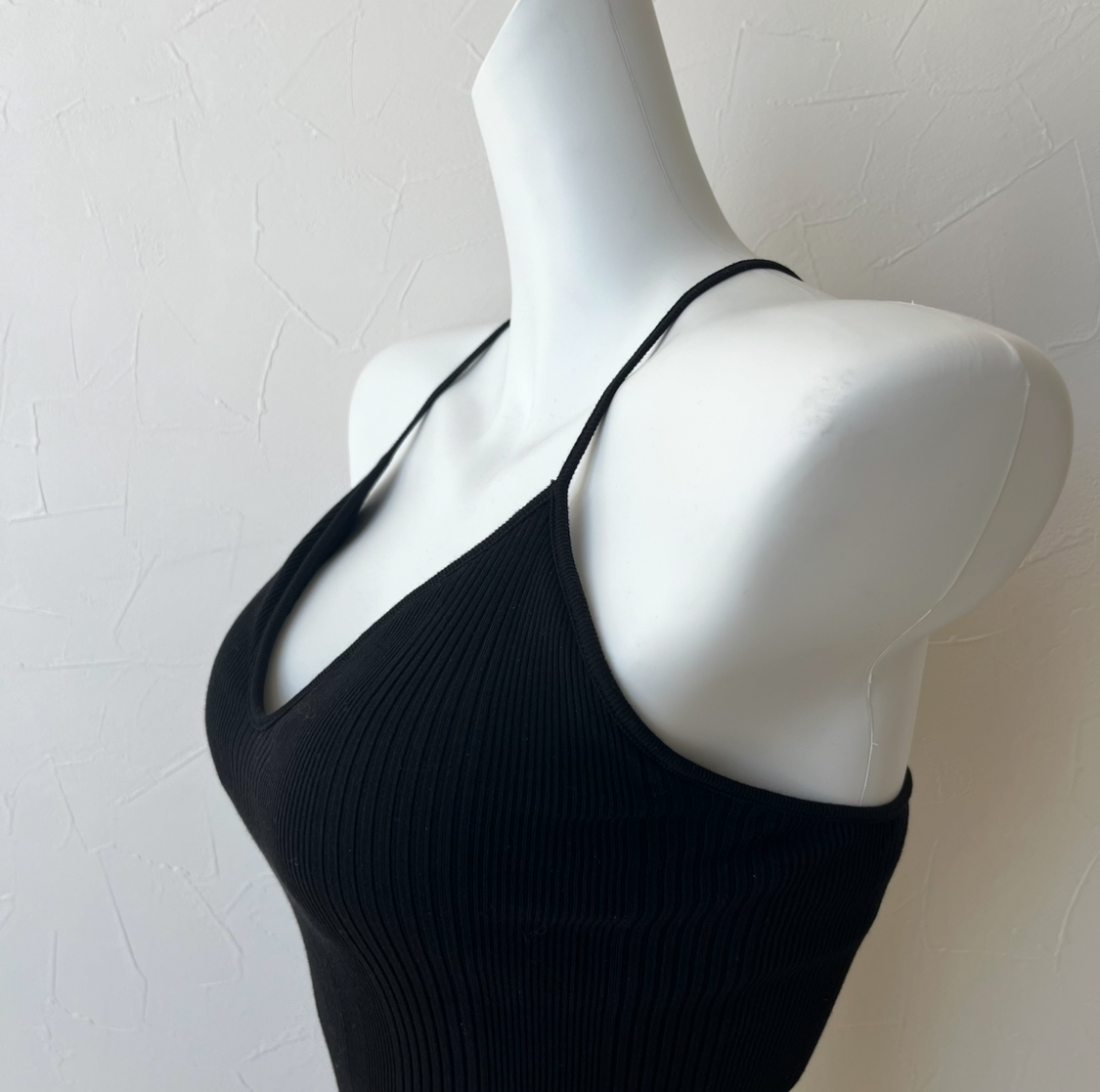 何度もアップデートを重ねて完成したカップ付きキャミソールは、胸元のカッティングがとても美しく、身体の動きにそっと寄り添う曲線が魅力。